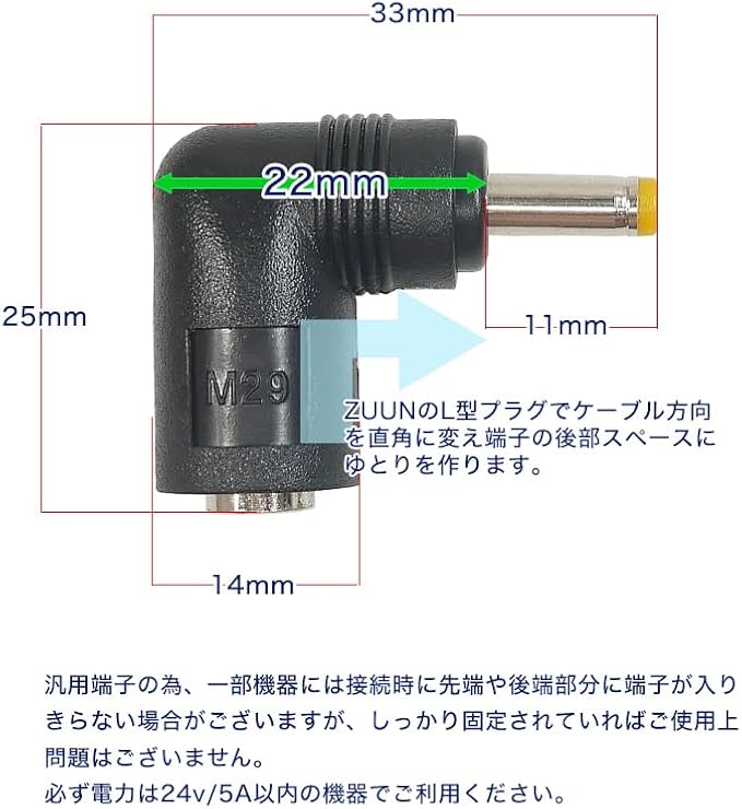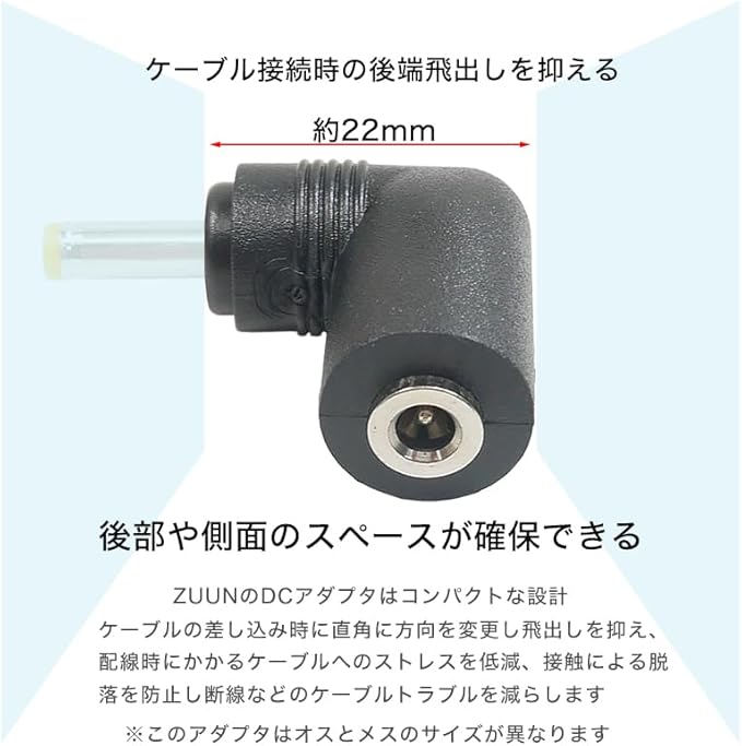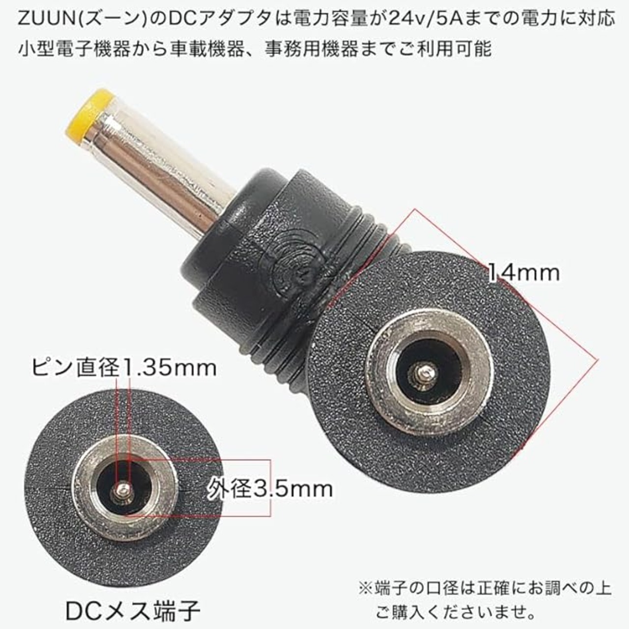 ZUUN (ズーン) ACアダプター DC端子変換アダプタ メス 外径 3.5mm 内径 1.35mm → オス 外径4.0mm 内径1.7mm 24V 5Aまで対応 口径変換 (メス 3.5φ/1.35φ→オス 4.0φ/1.7φ L型)