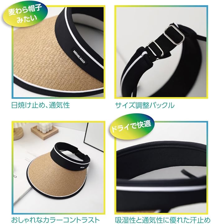 [jiang] ジアン 帽子 レディース 麦わら 春 夏 uv サンバイザー 小顔 大きいサイズ 大きめ UVカット 100% 遮光 つば広 ぼうし 自転車 日焼け防止 ガーデンニング かわいい おしゃれ 母の日 プレゼント