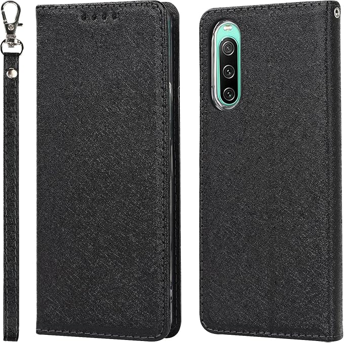 対応Xperia 10 IV SO-52C SO-G07 エクスペリア 10 IV 手帳型 シェルノートブックタイプ保護カバーノートブックカード収納側マグネットブラケット機能互換性のある耐衝撃性軽量モダンシンプルファッションPUレザー折りたたみ式フル保護カバー男性と女性のスマートフォンケース用(ブラック)