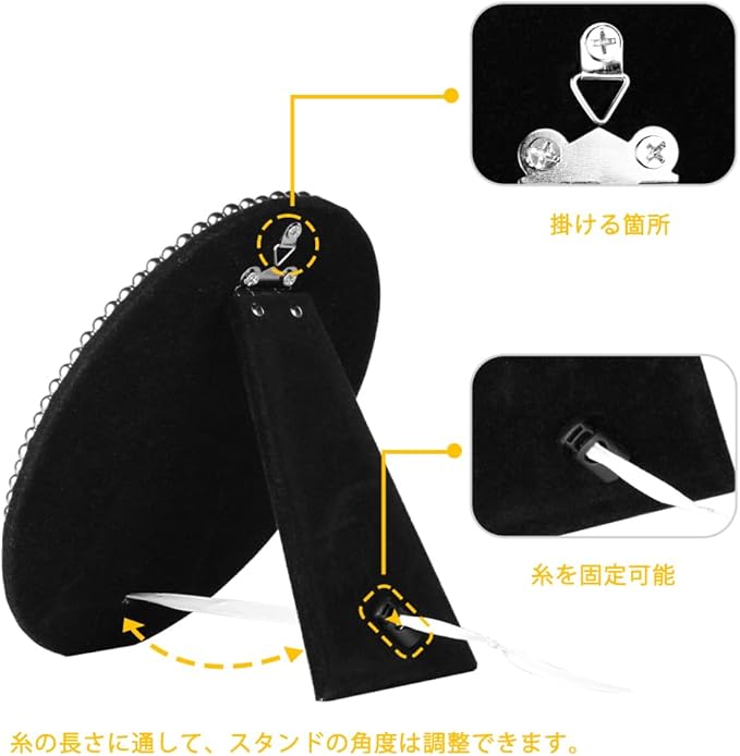 両用式:Baskissジュエリー収納スタンドはドレッサーの上で立てます。壁にかけて使用もOKです。立てる場合、糸の長さが調整でき、立てる角度は調整できます。