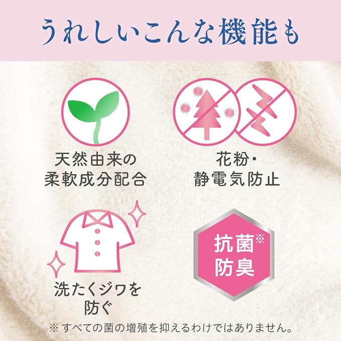 成分:界面活性剤(エステル型ジアルキルアンモニウム塩、ポリオキシエチレンアルキルエーテル)、安定化剤