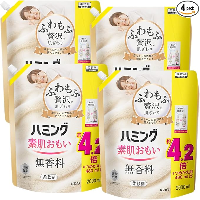 ハミング 【ケース販売】素肌おもい 柔軟剤 ふわもふ贅沢な肌ざわり・No.1のやわらかさ 素肌おもい 無香料 詰替え用 2000ml 4個