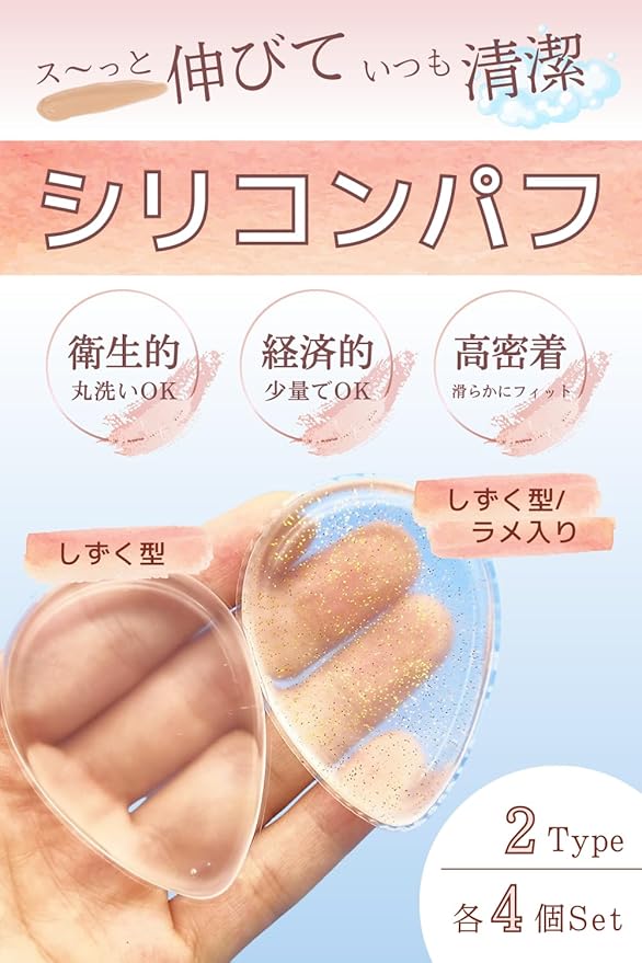 [KUREHA DEAL] シリコンパフ メイクスポンジ 化粧パフ 4個セットxしずく型 メイクパフ (しずく型)