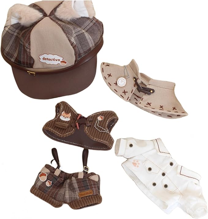 BACALYSO | ぬいぐるみ 用 20cm人形の服 女の子 綿人形の服 探偵服 選択多様 フワフワ 服セット 靴 メガネ 可愛いスカート ドール 人形ベビー服 着せ替え 服 (服セット)