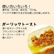 風味豊かなにんにくオリーブオイルに、味のバランスを整える菜種油をブレンドし、まろやかで奥深い味わいに。フライドガーリック、刻みニンニク、パセリ、オニオンを贅沢に配合し、香り豊かなガーリックオイル風に仕上げました。サクサク食感を長く楽しめるよう、液体調味料を使わず、素材と塩のうまみを活かした独自製法を採用。