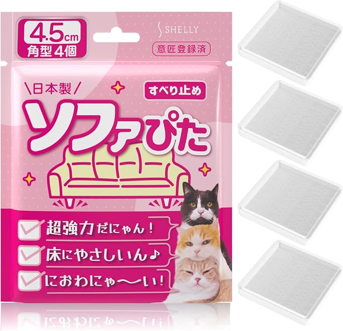 シェリー Shelly 超強力 ソファー 滑り止め ソファぴた 角型 4.5センチ クリア 日本製 ソファ滑り止め ベッド滑り止め テーブル滑り止め ソファ 足 傷防止 ズレ防止 防音 床暖房 ソファ 滑り止め 最強 4.5cm