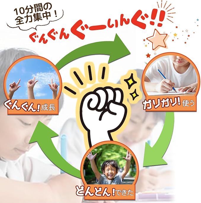 【ぐんぐんぐーんからのメッセージ】環境・エコに配慮して製造しております。名前の間違えや商品の擦れ・傷など含まれている場合は、品質保証範囲で交換させていただいております。ぐんぐんぐーんは、瞬間でやる気にスイッチが入り、10分間全力集中で課題に取り組むことを目的としているため、品質には徹底的にこだわり製造しております。一つだけご理解いただきたいのは、ぐんぐんメソッドをうまく引き出すには、子供たちとのたくさん話すことが重要です。ぐんぐんぐーんは、子供の夢や挑戦したいことなどおおくの夢を保護者の方たちと共有すためのものとしてご利用いただければ、名前入れをして贈るみなさまにとっても、未来や希望 また夢などが一緒に見れるのではないでしょうか。最後にいろんな【できた!】のレビュをいただいており、感動と感謝をいただいてます。本当にうれしくて、たまにスタッフ全員泣いたりします。どうか、ぐんぐんぐーんをこれからもよろしくお願いします。最後に、ぐんぐんぐーんには、なんと歌があります。みんなで歌ってね!