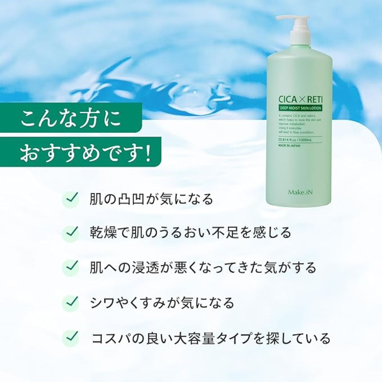 Make.iN CICA RETI ディープ モイスト スキン ローション 1,000mL | シカ レチノール 化粧水 保湿 スキンケア (ローション 2本 セット)