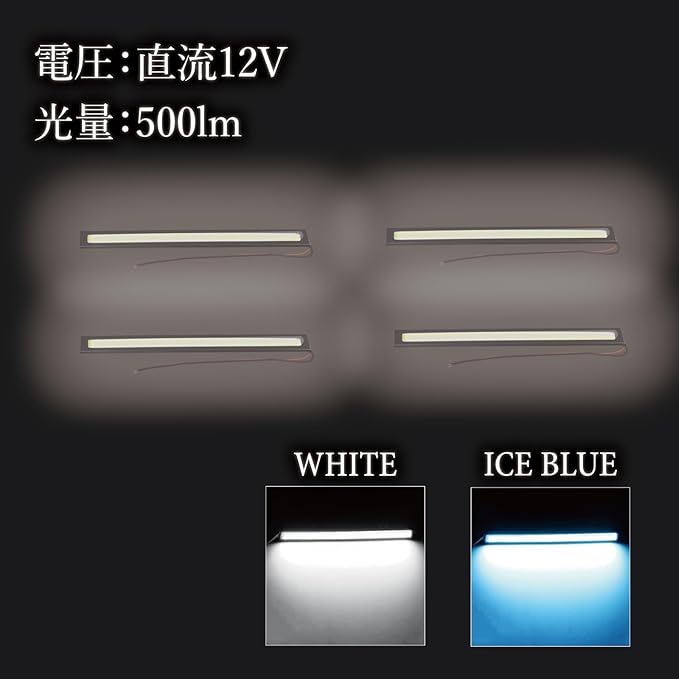 Crown Doris LED 薄型 デイライト バーライト 12V COB 爆光 防水 防塵 両面テープ 全面 17cm 4本 セット 青 アイスブルー
