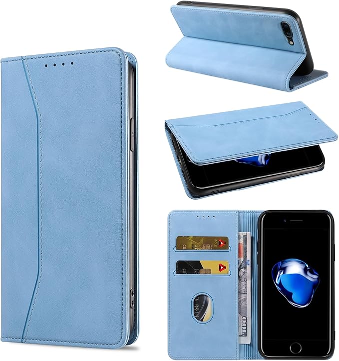 KWATUNG iphone se3 ケース 手帳型 iphone se2 ケース 手帳型 iphone7ケース 手帳型 iphone8 ケース 手帳型 おしゃれシンプル 肌感レザー 内蔵マグネット iphoneseケース 手帳型 第2世代 耐衝撃 全面保護 iphone 8 カバー手帳型 アイホン8ケース 手帳型 4.7インチ ライトブルー