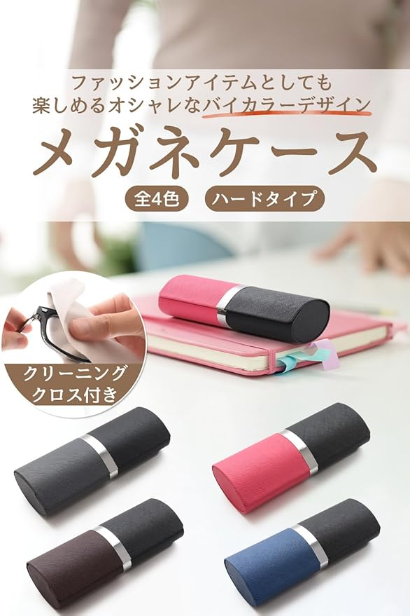 バイカラーのお洒落なメガネケース。眼鏡を持ち運ぶだけでなく、ファッションアイテムとしても楽しめます。