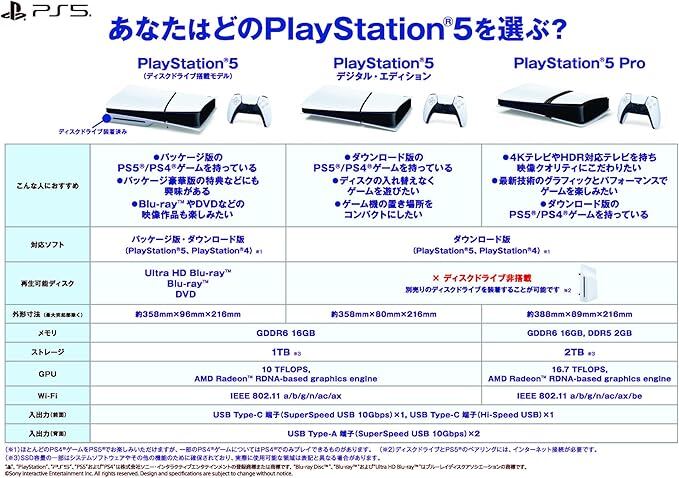 同梱されるPlayStation 5は、ゲーム体験を実現するテクノロジーや機能はそのままに、小型化を実現した新モデルのPS5(model group - slim)です。 Ultra HD Blu-rayディスクドライブは着脱可能となり、本体内蔵のSSDストレージは1TBになります。