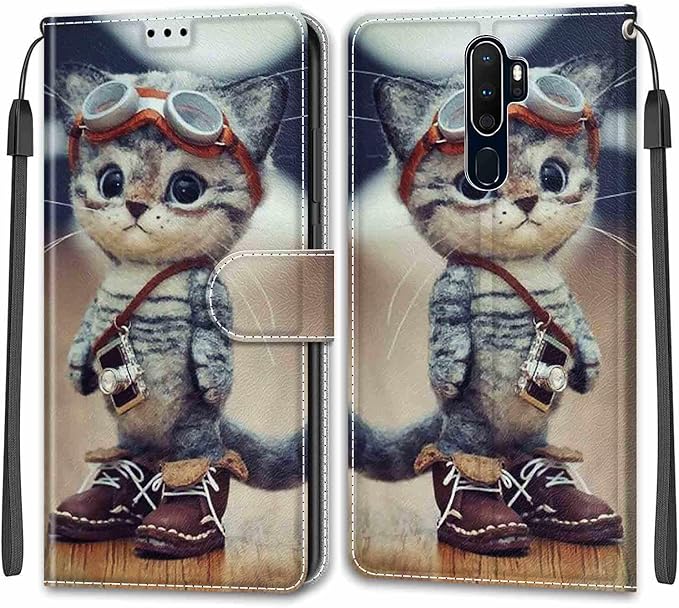 KENHONER OPPO A5 2020/A9 2020/A11X ケース 手帳型 対応 カバー PUレザー カード収納 財布型 耐衝撃 ケース マグネット スタンド機能付き 10色 (OPPO A5 2020/A9 2020/A11X ケース 手帳型) (スーツ猫)