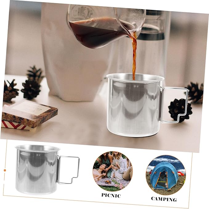 COOLHIYA ステンレススチール製キャンプカップハンドルポータブ ルマグ多機能ウォーターカップアウトドアアクティビティ用