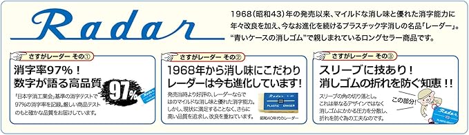 【レーダー】1968年発売の「青いケースの消しゴム」で親しまれているロングセラー消しゴム