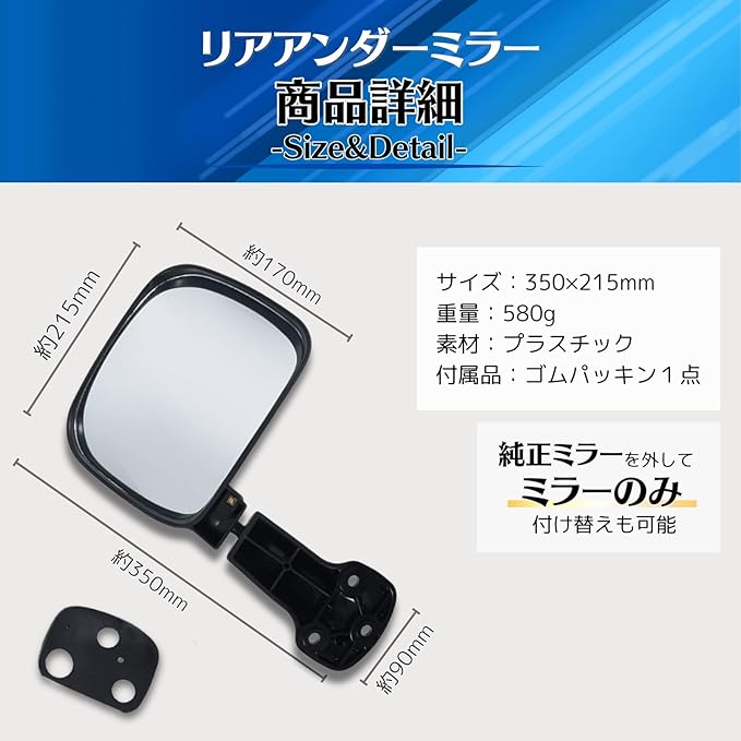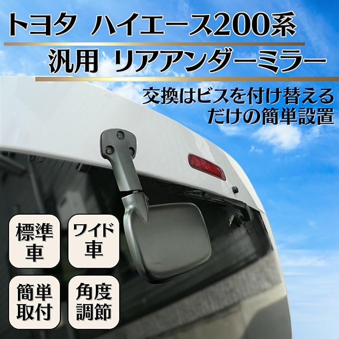 【商品詳細】トヨタ ハイエース 200系のリアアンダーミラー専用設計となっております。付属品:ゴムパッキン