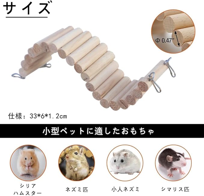 YACHUN ハムスター はしご ステップ 歯磨き おもちゃ 小動物用 おもちゃ 木製 ペット 遊び道具 小動物歯磨き 歯を研削する ストレス解消 運動不足解消 ペット用品