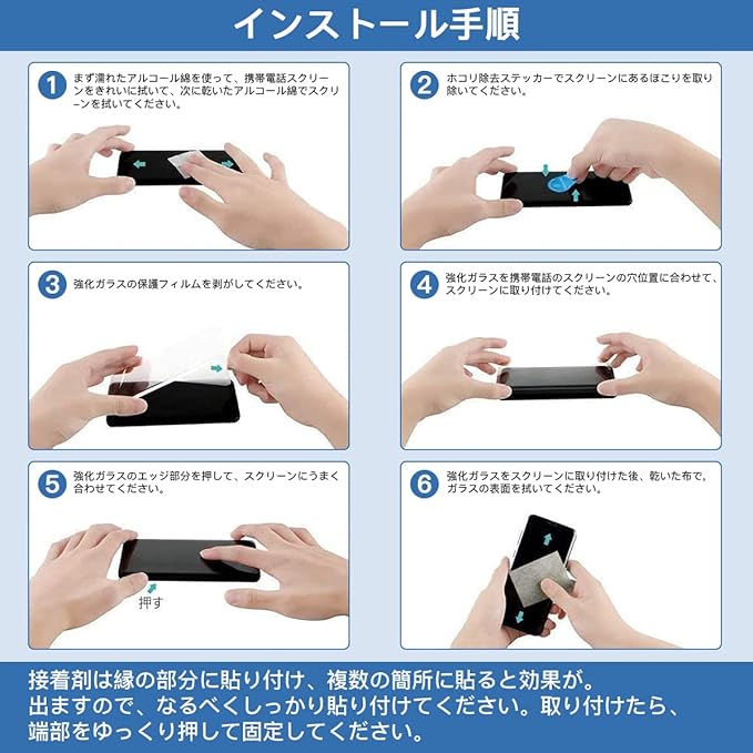 特徴 硬度9H越え、圧倒的な耐衝撃性、全面保護、飛散防止、撥水、防水、抜群な透明感、気泡ゼロ、素人でも簡単に装着できる、気泡レス、光沢、防指紋、ケースと干渉しない