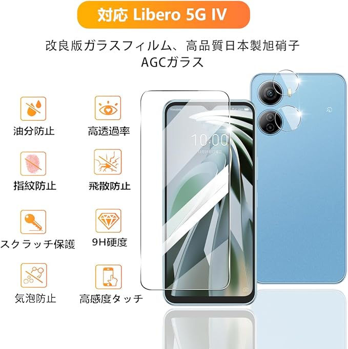 【9H強度&飛散防止】対応 リベロ 5G IV A302ZT 強化ガラス 保護フィルムは日本旭硝子素材を採用します。 落下、スクラッチ、衝突、衝撃に高い耐久性があります 衝撃を最小限に抑えて画面の破損を抑え。カッターなどの鋭利なものを当たってもキズが付きにくくて高い強度を持ち表面硬度9Hが特徴です。特殊な飛散防止設計により、万一割れてしまった際にも飛散することなく、高い安全性を実現します。