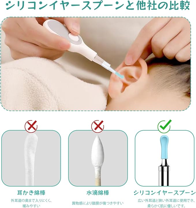 【耳スコープ 交換部品】耳スプーンの先端部分は高品質で柔らかいシリコンで作られており、気持ち良く、落ちにくく、耳道を損傷しません。スムーズに素晴らしい耳掃除の楽しさを体験させいただけます。お年寄りと子供もすべて適用して、家族みんなの耳垢ごっそりを満足します。