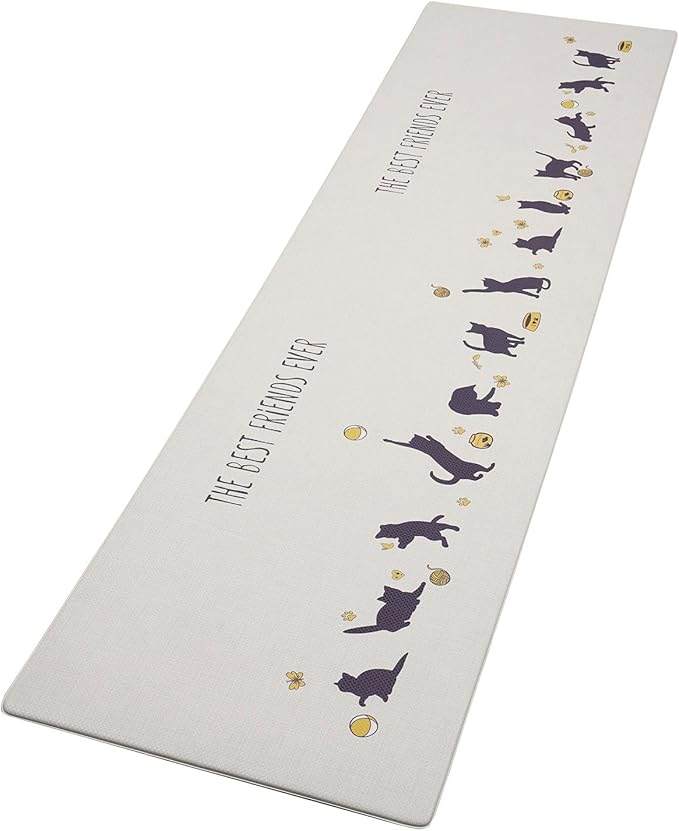 Ashmore キッチンマット 拭ける台所マ ット ずれない PVCロング床マット 撥水 おしゃれ 滑り止め 抗菌 防炎 厚さ10mm お手入れ簡単 約60cm*240cm 猫