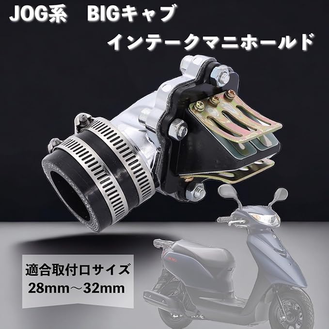 Kanoan インテークマニホールド ヤマハ 用 ビッグキャブ JOG ジョグ アプリオ ビーノ アクシス グランドアクシス JOG 系 90 28mm ~ 32mm 部品 交換 修理 汎用品 社外品 インマニ リードバルブ (シルバー)