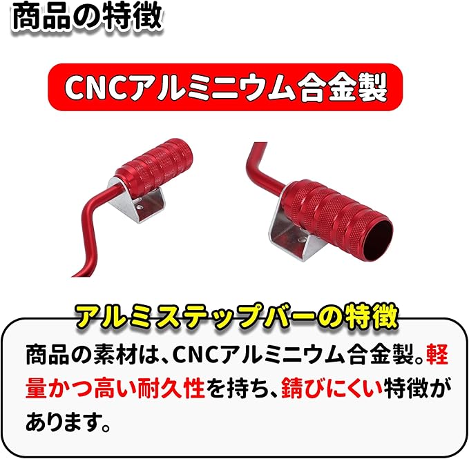 アルミ ステップバー スクーター ズーマー X アドレス V100 V125 DIO JOG ジャイロ キャノピー アクシス トゥデイ ZZ フットステップ フットペグ 汎用 社外品 (レッド)