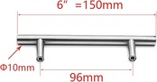2 個 50 ミリメートル-500 ミリメートルステンレス鋼ハンドル T バーデスク引き出しプルキャビネットハンドル家具キッチンドア (Color : 6 inch 96mm)