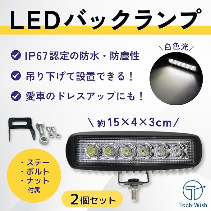 Tochi Wish 汎用 吊り下げ LED バックランプ フォグランプ ワークライト 作業灯 IP67 防水 18W 車 オートバイ トラック アメ車