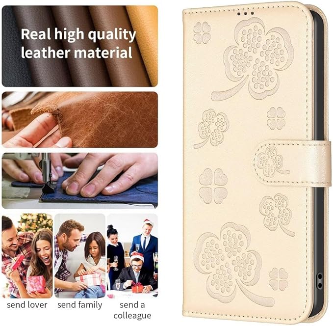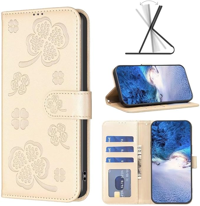 WVYMX Huawei Honor X9B用 [キックスタンド機能] リーフ エンボス PU レザー ウォレット ケース フリップ フォリオ カバー [カードスロット] [リストストラップ] Huawei Honor X9B 用 - ゴールド