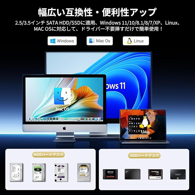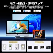 【超高速・高安定性】本製品HDD ケースは高性能の2つチップを採用、又はUSB3.0接続により、5Gbpsのデータ転送速度で快適に利用できます。データ伝送時の安定性を高めるために、ケースには安全モジュールも装備、過熱保護、電圧分離保護、短絡保護により、データ転送時の安定性と安全性をより高めることが可能! HDDハードディスク自体の転送速度により転送速度が違います。