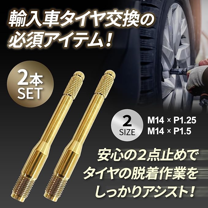 輸入車のホイール装着を容易にするホイールセッティングボルトセット(ガイドピン2本セット)。輸入車のホイール交換の際に当社の製品をご使用いただくと、ボルトの位置決め・ホイールのセンター出しが誰でも簡単にできます!