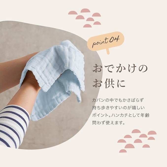 【使用上の注意】・ガーゼハンドタオルの交換は季節ごとを推奨しています。 ・強く引っ張ったり、物に引っかかったりすると、ほつれる場合がございます。 ・ガーゼ素材の特性上、洗濯後に多少の縮みが発生します。・色ごとに多少の個体差がございます。ご了承ください。