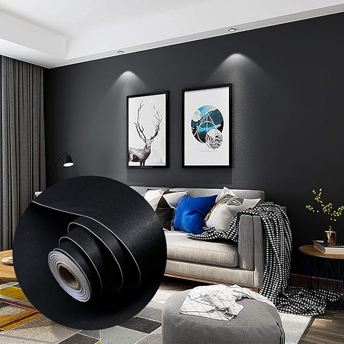 ✅【壁紙黒凸凹加工】市場の黒壁紙より厚いですが。本黒壁紙は2回の凸凹加工して表面立体感あります。【厚手】厚さ:0.26mm 、シールタイプで貼り付ける途中厚みあますから、気泡、しわ、破れになりにくい、簡単でキレイに貼れます。耐久性や耐摩耗性に優れています、ハサミやカッターで、お好きな長さにカッティングして活用できます。裏面は嬉しい目盛り付でDIY初心者の方でもお気軽にお試しいただけます。