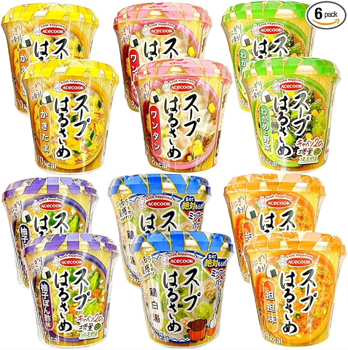 エースコック スープはるさめ 6種 各2個 アソートセット(かきたま・ワンタン・わかめと野菜・柚子ぽん酢・鶏白湯・坦坦味)