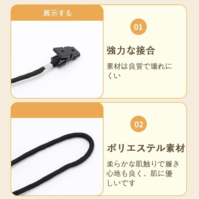【機能】一端を帽子に、もう一端を服に挟んで、帽子が吹き飛ばされないようにする役割を果たします。