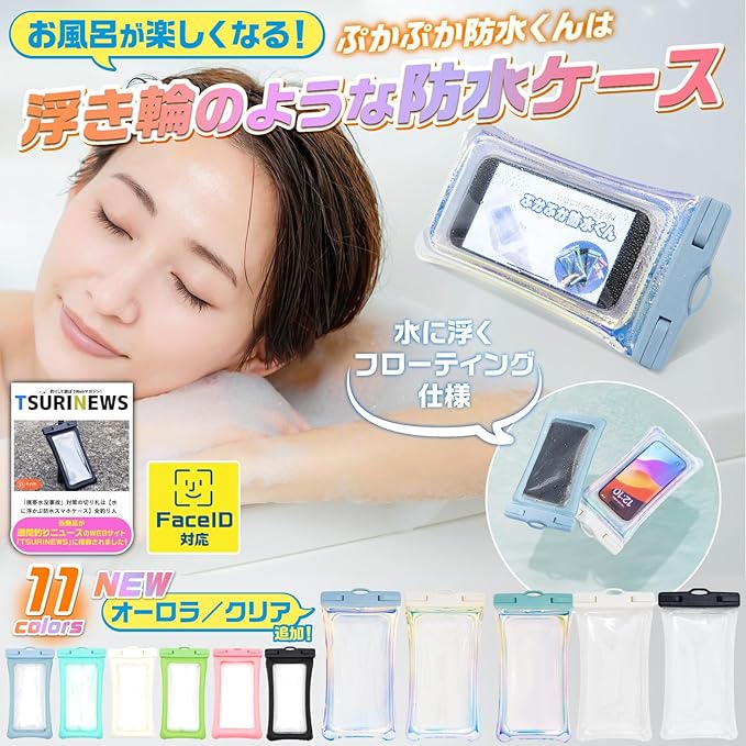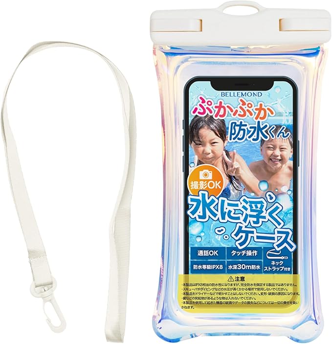 ベルモンド スマホ 防水ケース お風呂 【 IPX8 / 顔認証/水に浮く/水中撮影 】首かけ 海 プール 釣り/iPhone 16 15 13 12 pro max 対応 携帯電話 防水 ぷかぷか防水くん #09 オーロラ ピュアホワイト B0915