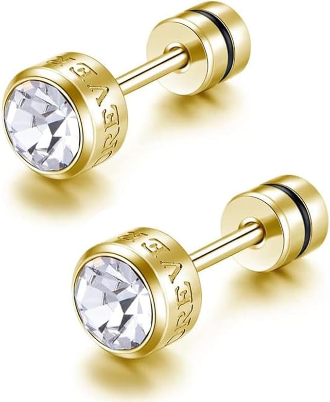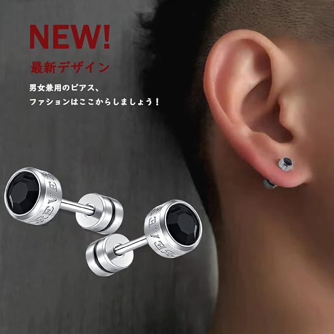 YEENKE ピアス メンズ シンプル メンズピアス ゴールド 黒い石 サージカルステンレス スタッド つけっぱなし ネジ式 ジュエリー 男女兼用 両耳用 キャッチ 人気 おしゃれ プレゼント レディース ファーストピアス ブラック 2個セット 5mm