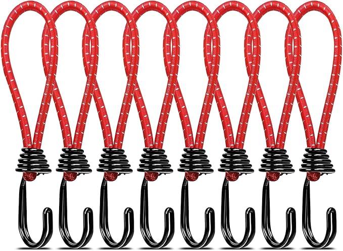 張綱ツインフック ロープ張り 8本セット【2024強化版&反射材入り設計】フック ゴム ゴムフック ロープフック 張綱ストレッチコード タープ部品 テントフック ツインフック ストレッチコード アウトドア用 テントアクセサリー キャンプ ソロキャンプ用 防風 設営 吊り下げ 仮止め 固定など(レッド)