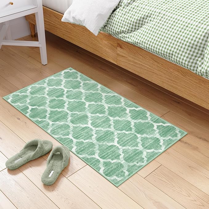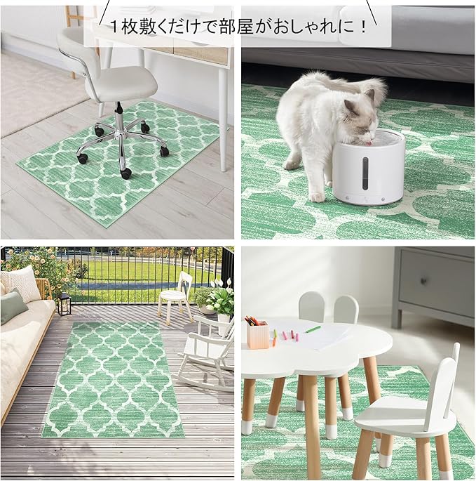 HAOCOO ラグマット 洗える 70х120cm 北欧 約1畳 ラグ オールシーズン適用 モロコシ柄 ふわふわ 滑り止め ホットカーペット対応 低反発 防音 抗菌防臭 リビング ダイニング ラグマット アンティーク ミントグーリン