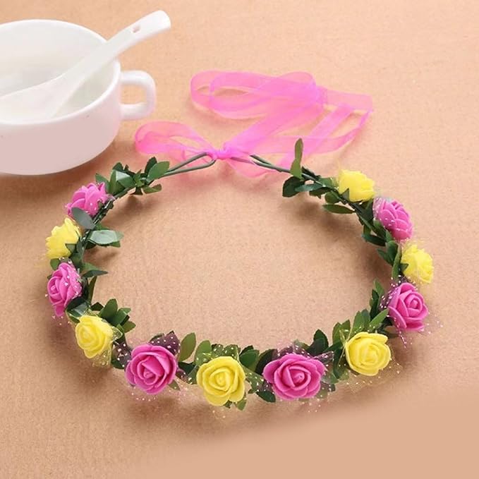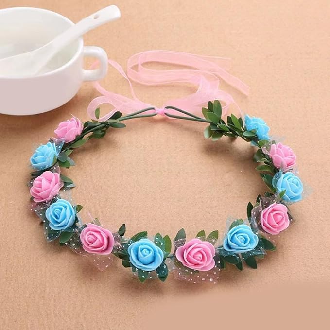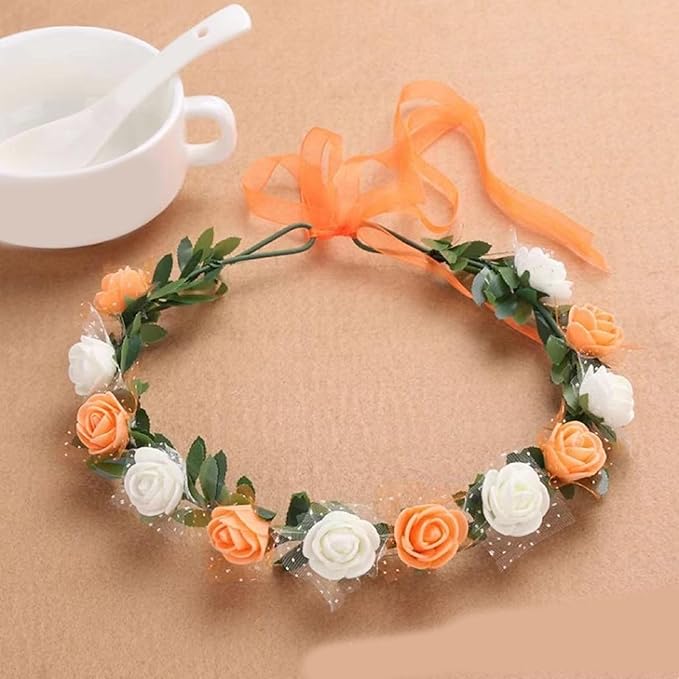 結婚式用の花嫁の花、フラワーヘッドバンドレディース、フローラルガーランドヘアリース、花嫁の花のヘッドバンド、花嫁の花のヘッドバンド。リボン付きで、ほとんどの人にフィットします。