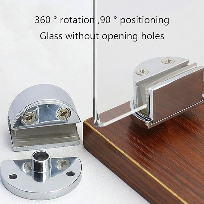 BaoFufc ガラスドアヒンジ ドリル不要 ガラスドア ピボットヒンジ 亜鉛合金ガラス シングルクランプヒンジ バスルーム キッチンキャビネット用 360度回転シャフトヒンジ