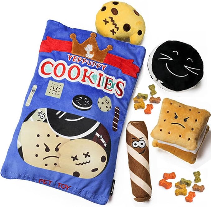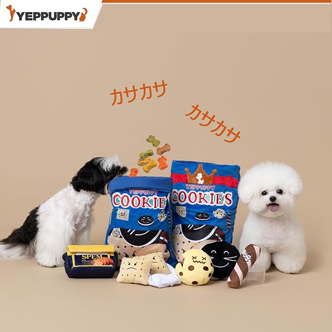 YEPPUPPY 音が鳴る ぬいぐるみ犬用おもちゃ - 犬の知育、耳触りの良い音で知能を刺激します - 楽しいおもちゃ 採餌本能を刺激 - おやつパズル 嗅覚 犬用おもちゃ - 犬用 噛むおもちゃ (クッキー&スパム)