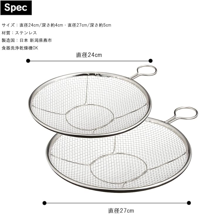 (サイズ) 本体 直径24cm/27㎝ (材質) 18-8ステンレス 6.5メッシュ (製造国) 日本 新潟県燕市 食器洗浄乾燥機OK