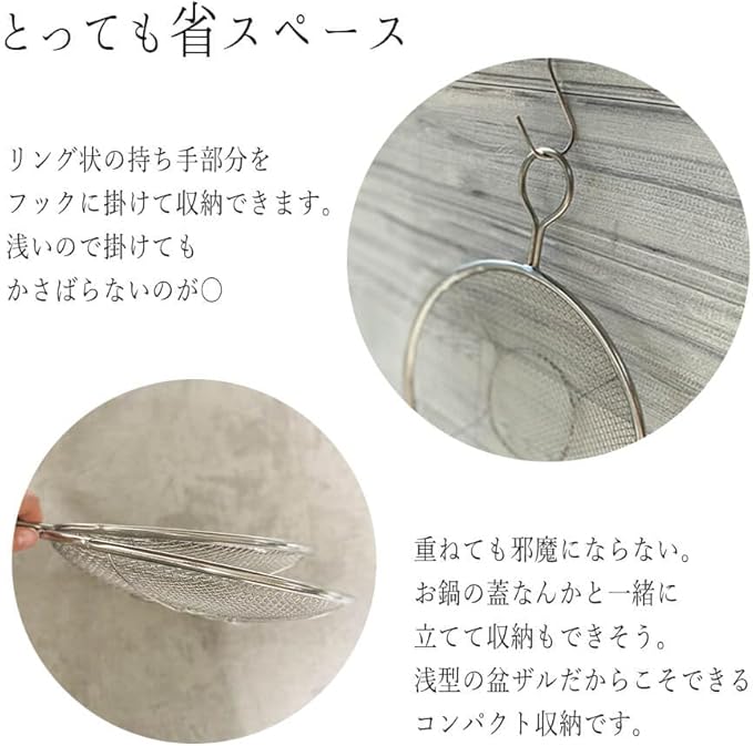 日本の職人技と現代の便利さを融合させた「燕三条製リング状取っ手付き盆ザル」は、キッチンの必需品として、全ての料理愛好家におすすめしたい一品です。私たちの生活に欠かせないキッチンツールとして、その優れた機能性とデザインが、日常の調理作業をさらに楽しく、効率的にしてくれます。 まず、この盆ザルの最大の特長であるリング状の取っ手は、一目でその便利さに気づかされます。一般的な盆ザルには取っ手がないため、扱いにくく感じることが多いでしょう。しかし、燕三条製のこの盆ザルは、持ちやすいリング状の取っ手を採用しています。熱いお湯を使った後でも簡単に持ち運びができるだけでなく、調理の合間にサッと持ち上げて使うことができるので、キッチンでの動作が格段にスムーズになります。さらに、このリング状の取っ手は収納時にも非常に便利で、フックに掛けて省スペースで保管することができます。これにより、キッチンの整理整頓がしやすくなり、常に清潔で美しい環境を保つことができます。