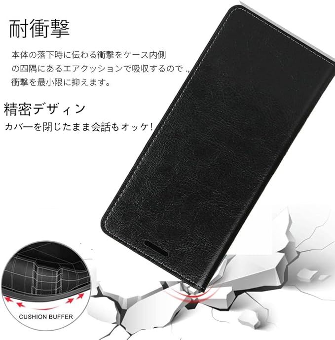【純正レザー】耐久性に優れる本革を使っており、丈夫で高級感がありの商品です。ご注意:この商品に使う本革(牛革)が本革の第2層の床革系レザーというスプリット革(split cowhide)です。「革をつくる際は、皮を脱毛後に上層と下層に分けます。床革系のレザーは、その下層部分をつかって仕上げた革です。」予めご了承ください。。シンプルでシックなデザインで、場所問わず長くご愛用いただける手帳型です。丈夫で、摩擦耐性、汚れ防止。