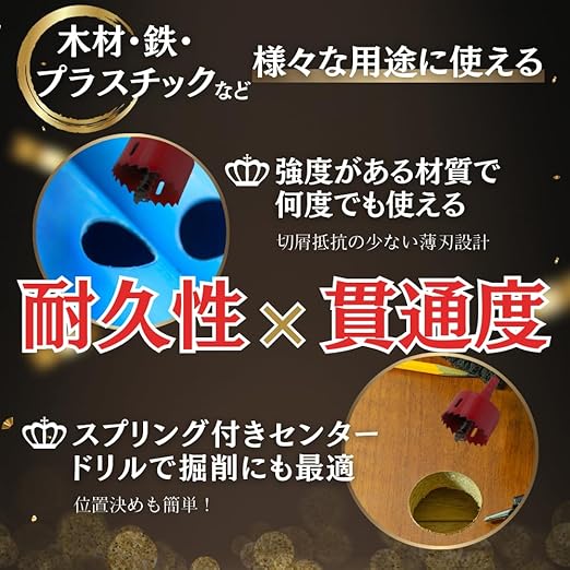 高強度HSS製:切削抵抗が少なく、アルミ板、鉄板、木材などの素材を素早く貫通できます。