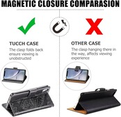 【性能抜群】横置きスタンド機能が付いて、好きな角度で動画鑑賞や読書などを楽しめます。ブック型ケースとして、内側には三つのカード入れとフリーポケットがつき、名刺や定期券の収納に優れている手帳型ケースです。