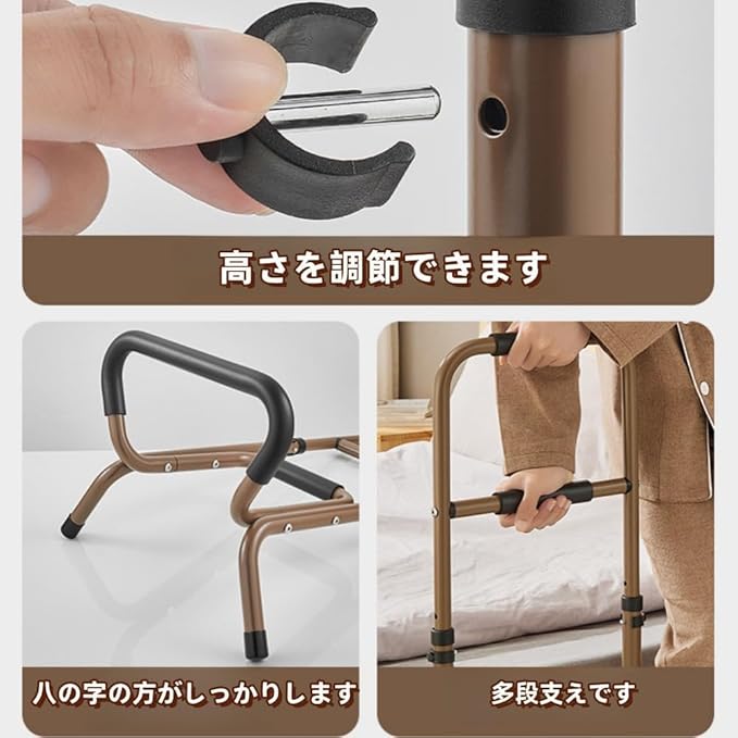 立ちあがり補助手すり 介護 補助用品 補助手すり 3段階高さ調節 室内 杖 手すり 転倒防止 簡単組み立て 玄関 トイレ 介護 ベッド 転倒防止 簡単組み立て 大ゴム (A)