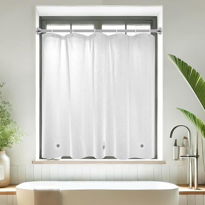 AooHome 浴室窓カーテン シャワーカーテン 小窓 110cm丈 防寒 保温 クリア 冬夏 EVA材質 目隠し 防水 ミニ 短め 防カビ ユニットバス お風呂場 カフェカーテン すりガラス柄 リング付き 取付簡単